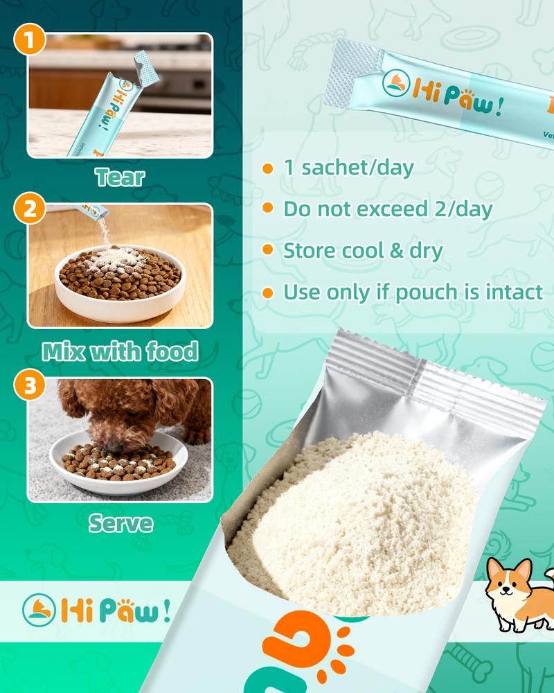 - Sachets: Individually wrapped sachets with the Hi PAW! Probiotics formula.