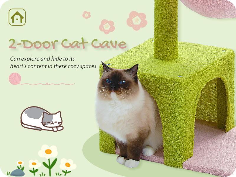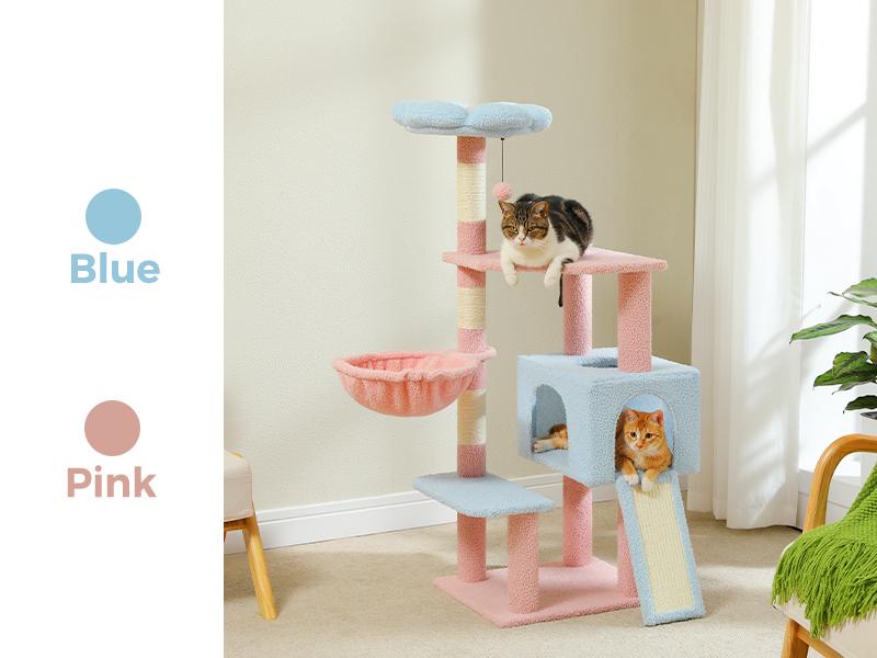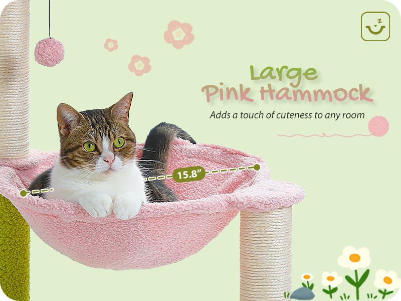 - Sisal posts, fluffy ball, cozy hammock, and spacious cat condo.