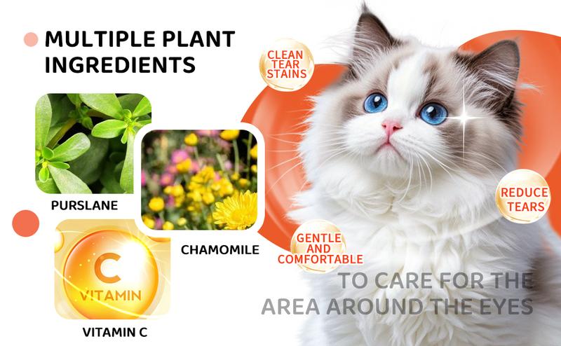 Gently cleanse and moisturize your furry friend's eyes with our tear stain remover. Made specifically for most cats and dogs, this deep cleansing formula promotes eye health and removes unsightly stains. Incorporate it into your daily routine with ease and give your pet the care they deserve.